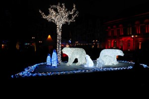 One nice thing to see in november is the Lichtwoche (“light week”) which has taken place since 2001. Actually and to be cynical, the “light week” is a kind of advertisement for Rostock’s energy supplier(s); nevertheless it is great to see the light shows in Kröpeliner street and to enjoy the programme during this week. There are different light shows: some of the buildings in Kröpeliner street appear in different lights and colours and there are stands with e.g. polar bears and penguins just created with fairy lights.