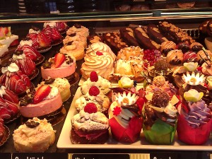 What awaits you there is candy for the eye and pastry to spoil your taste buds: little pieces of heaven with creamy fillings and lush fruit décor, chocolate toppings and sprinkles, lining up, waiting to be enjoyed. The greatest challenge is to decide on ONE (and maybe one more).