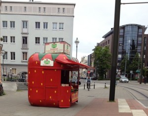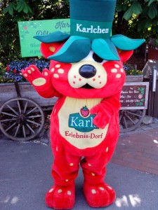 Karlchen, the friendly “strawbeary“ at the entrance/exit of Karl’s