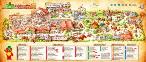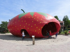 As you can see on the map, the area is huge and filled to the brim with attractions: several playgrounds, a giant strawberry to climb into, the biggest beach chair you’ve ever seen, a petting zoo with goats and sheep, an enormous sandpit with miniature excavators and a big red bouncing pillow, and much more.