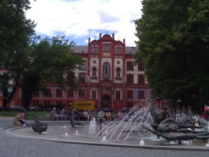 Rostock harbours a wonderful collection of zoological specimen and curiosities. This collection is located right in the middle of Rostock’s shopping centre near the high spirits fountain (in German: Brunnen der Lebensfreude, but to every Rostocker only the inofficial name “Pornobrunnen” rings a bell). The centre of Rostock is worth seeing in itself but even more so the secluded part behind the little patch of greenery next to the fountain.