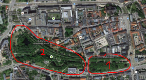 The Schwanenteich is larger than the word “pond“ might suggest (ca. 1.5 hectares); you might even call it “Swan Lake“; maybe, whoever named it wanted to avoid getting sued for copyright infringement 😉 In the middle of the pond is a large, gorgeous fountain, whose spray you can even feel on your face from quite a distance if the wind is strong enough.