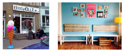 There are many different ice cream shops around, but for me there is only one I would go to every single day: the small but really cute ice cream shop called Eisscholle. It opened on June 1st, 2011 and is located in the Waldemarstraße 5 in the KTV. [mappress mapid=”288″]