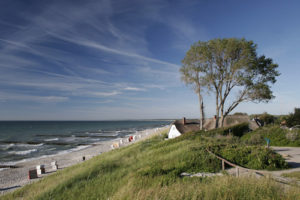 One of my favourite weekend getaways is Wustrow. It’s a nice little village on Darß which has a lot of charming cafés, beautiful old wooden beam frame houses and a long beach. It’s also located at the most narrow section of the peninsula — so you actually have the Baltic sea to the West of the town and the Saalter Bodden to the East. But that’s not all: If you take a walk along the beach, you can walk all the way to Ahrenshoop along the steep coast and enjoy the lovely views on the sea and the unique scenery of the drawn-out slim beach along the coastline.