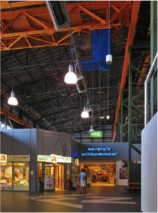 When visiting the Neptun Shopping Centre for the first time, you may notice the unusual architecture, which is really different from what is normal for a Shopping Centre. The reason goes back to the history of the hall: The Neptun Shopping Centre opened in 2008 and is located in the former “Neptunwerft” (“Neptun-shipyard”), an old shipbuilding hall, which was renovated and modernized for the Centre.