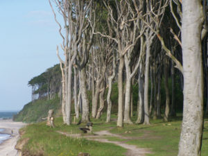 You will pass the small village of Börgerende and, shortly after, Nienhagen. Having walked through a very special ‘Gespensterwald’, the ‘Ghost Forrest’, you can congratulate yourself, you would have walked half your way already. It’s called Gespensterwald because the trees have curly, creepy looking branches. The forest reaches directly to the cliffs where numerous benches on top of the steep coast, offering an astonishing view. It’s one of my favourite places to think, relax or showing the contrasting beauty of the wild Gespensterwald tamed by benches as markers of civilization to friends. It is also a popular fotoshooting spot for Professionals and amateurs, especially at sunset.