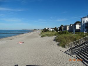 A cool forrest to your right, a sunny beach and the blue sea to your left, the seagulls above, and a fresh breeze around your nose – this will be your company for your next 24 km to todays destination: Warnemünde. You can take a bath if you dare: The water temperature varies from 3°C to 12°C depending of the time of spring. You will see the first crazy people taking a bath. But be careful and don’t swim too far: It is damn cold and you can get cramps and numb legs and possibly drown! But if you are trained and like ice hole swimming in the winter, as many natives here do (We even have a club dedicated to swimming in the winter!), the temperature won’t matter for you. My personal record for the Baltic Sea is 6°C in late March: freezingly cold! But it is alway nice to cool down your feet after a few kilometres. In the summer time, you’ll definetely want to take a refreshing bath and cool down in the enjoyable 22°C warm Baltic Sea. But make sure you pay the one or two Euros „Kurtaxe“ if you stay at a Seebad formore than one day, ticketmachines are at the beaches or at the tourist information. It’s a small fee guests have to pay to keep the beaches maintained, clean and lifeguards payed.