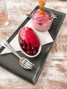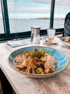 My top tip if you want to safe money: Visit from 11:30 am – 3 pm and order something from the lunch menu. What I like about this concept is that you can get high quality and amazing tasting dishes like curry, grilled fish or dessert for 10€ – 12€. Additionally, the meals change every week, allergy friendly dishes are included, and the chefs are very creative in turning almost any dish into a gluten free one! You also need to try the “chef’s dessert” which changes every day. One day, I was lucky enough to try the famous chocolate and strawberry mousse. For me personally, it was the best dessert that I have tasted in my entire life. The mousse melts in your mouth like soft butter and the velvety texture is incredible, as it feels like a little cloud that softly unfolds its flavor on your tongue.