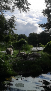 A few minutes later, we were paddling diligently in the direction of Papendorf where you find a nice resting spot with picnic tables to fill up your energy storages and a landing stage to easily pull the canoe out of the water. I was already acquainted with this picnic area because I went on a similar tour with my girlfriends last year and I thus knew that it would be an enjoyable and – in terms of distance – manageable destination. However, after one and a half hours of paddling and strenuous arm workout, we decided that we would take an early break on the water. We took off our sweaty shoes, dipped the feed in the water and opened a beer (not at 11am but probably a tad too early as well). After some refreshing sips, we let the sun heat up our faces and listened to the birds chirping and singing, delighted about the nascent spring. We observed a mute swan family who had apparently just like us decided to use the day for a little excursion, were persecuted by some ducks who showed a particular interest in our boat and squinted against the sun rays to detect gray herons and cormorants who were busy fishing and collecting nesting material. We finally decided to not move on to Papendorf and instead continue listening and observing the hustle and bustle of the different birds. We pulled our boat onto the embankment, had our semi-well-deserved picnic, and slowly returned home when we eventually noticed the sun going deeper.