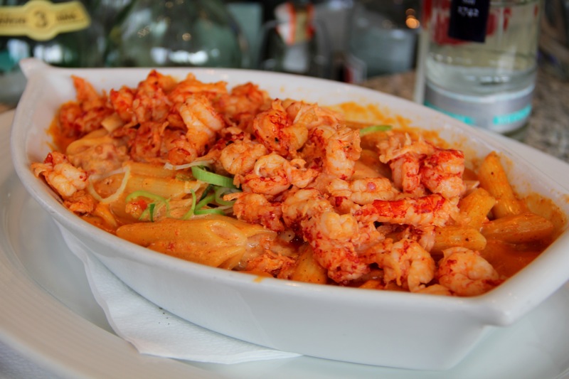 After transporting the drinks to our seats, we ordered our food. Primarily, Gosch is, of course, a fish restaurant and therefore offers a great variety of different fish dishes (especially traditional ones like “Labskaus” but also more extravagant dishes, for instance lobster). Apart from fish, there are also some offers of salads, pasta, soups, and meat. I ordered “Thai Penne” which did not really remind me of something to do with “Thai” but instead of Italia mixed up with spiciness. I can really recommend it, but I should have had some more water since it is really spicy (which gives it a special character).