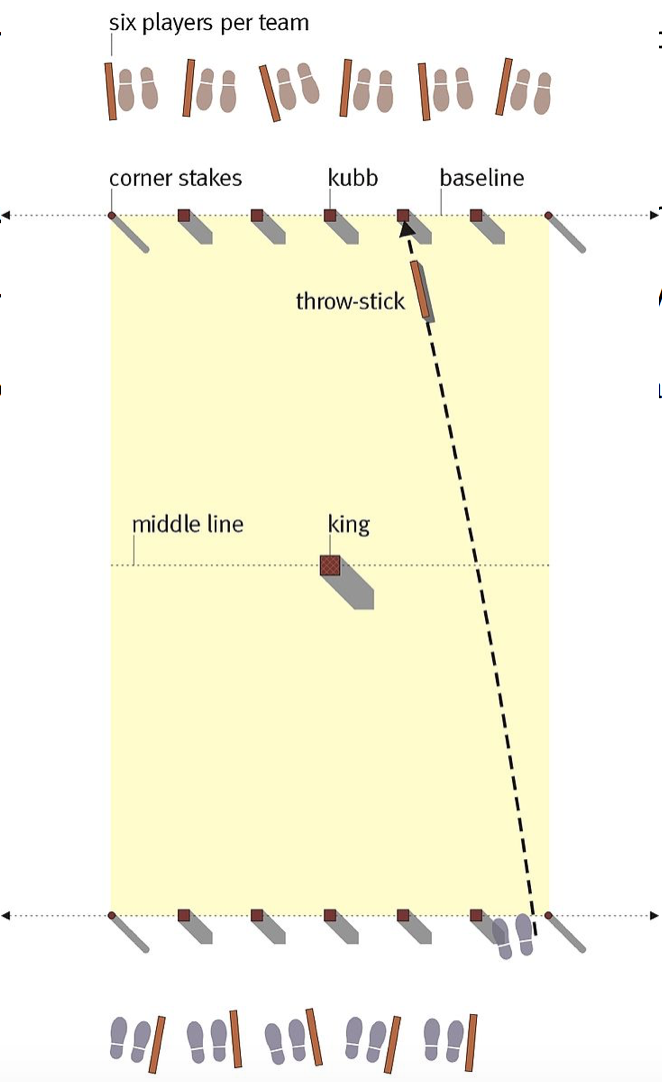 The basic rules are quite easy: two teams with up to six players each use their wooden sticks to knock over the wooden blocks (i.e. Kubbs) of the opponent team from behind the baseline. When a team knocks over all the opponents’ Kubbs, their final goal is to topple the king in the middle of the playing field.