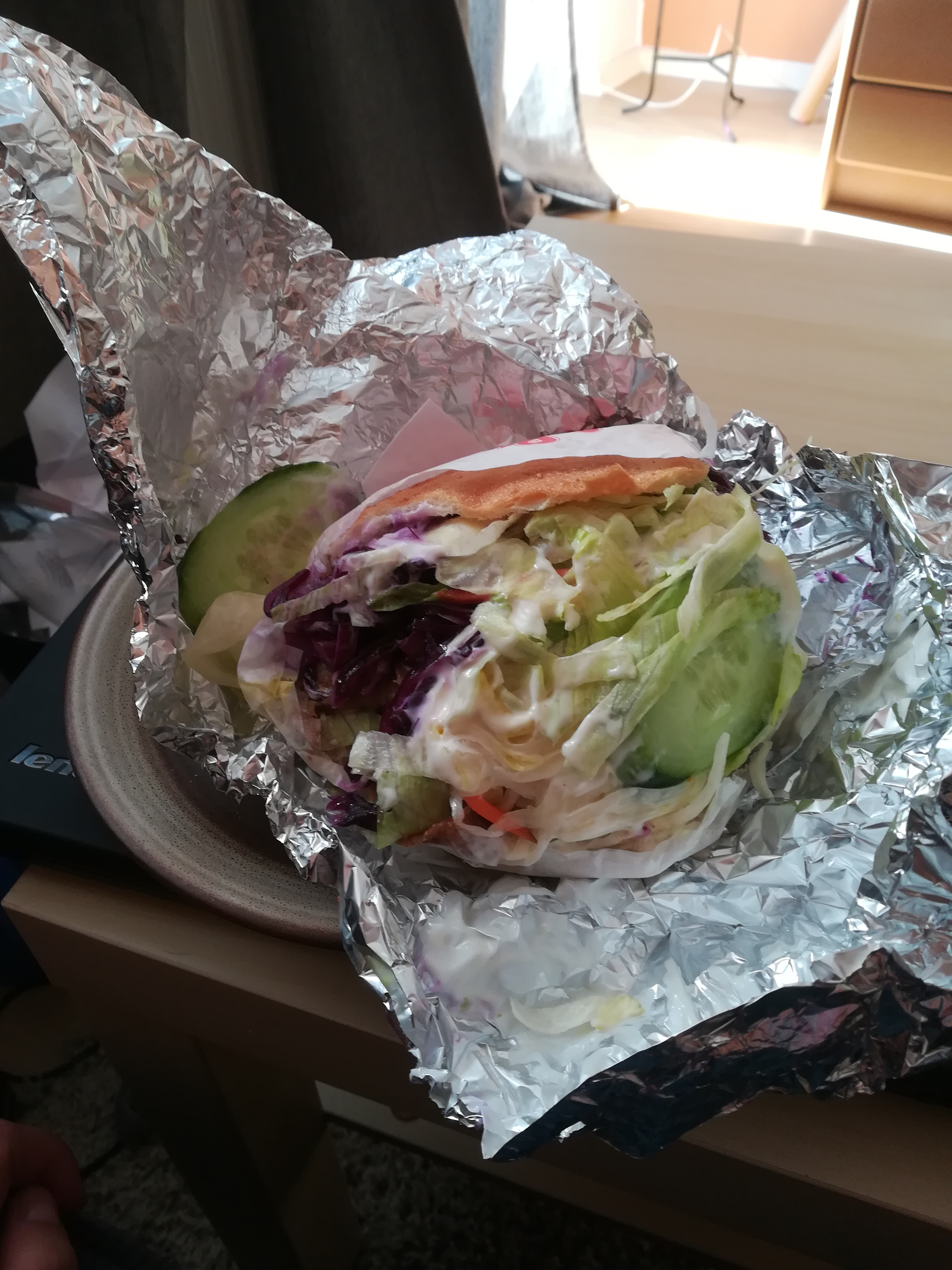 I usually don’t like to praise something, I don’t feel comfortable with praising stuff, but oh my lanta the sauce … the sauce was incredible. You can choose between garlic, spicy and also curry. I usually avoid spicy, so I can’t judge that one and instead enjoyed the curry sauce. This. Was. Heavenly. Fruity and perfectly balanced to the taste of the Döner itself.